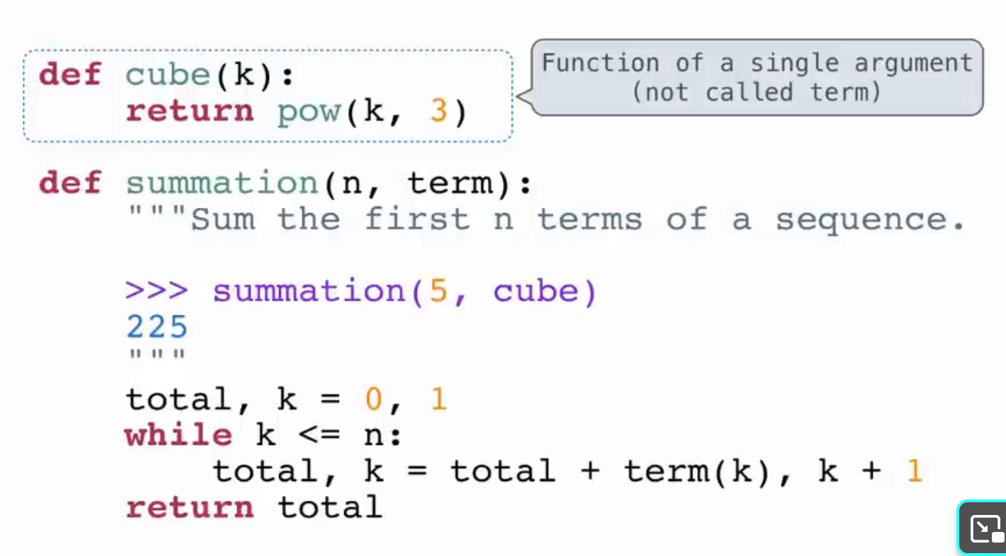 高阶函数是一种比用户定义函数更为强大的抽象: 用一些函数来表达计算的通用方法, 而且和他们调用的特定函数无关